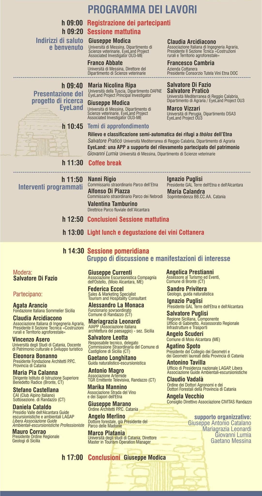 Nell’ambito del progetto di ricerca nazionale PRIN EyeLand, come unità di ricerca UniME, in collaborazione con gli amici e colleghi di UniRC e UniPG, sono stati presentati alla comunità locale del versante nord dell’Etna i risultati della ricerca sui rifugi in pietra a thòlos.